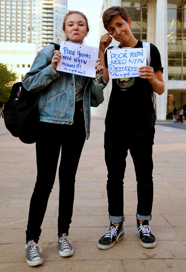 AND ON THE LAST NIGHT OF NEW YORK FASHION WEEK… Posted on September 14, 2012 “Aww. How old are you guys?” Juliet: ” I’m 15.” Steve: “I’m 13.” Juliet: “Wait!!! 13 ??? I thought you were 15??!! This is when I snuck away. Share this: Click to share on Facebook (Opens in new window) Facebook Click to share on Pinterest (Opens in new window) Pinterest Click to share on X (Opens in new window) X Click to share on Tumblr (Opens in new window) Tumblr Like Loading... Related